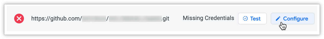 On the Import Credentials page under the URL heading, hold the pointer over a repository name to display the Test and Configure buttons, and click Configure.