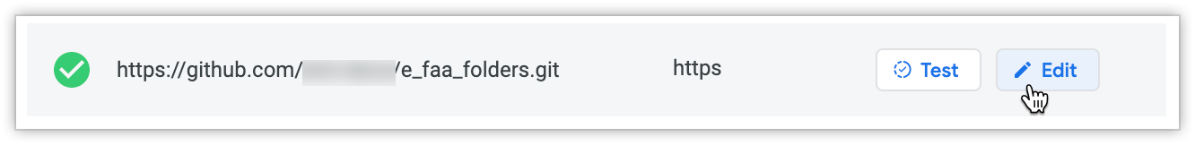 To display the Test and Edit buttons, hold the pointer over a repository that already has configured authentication credentials, and click Edit.