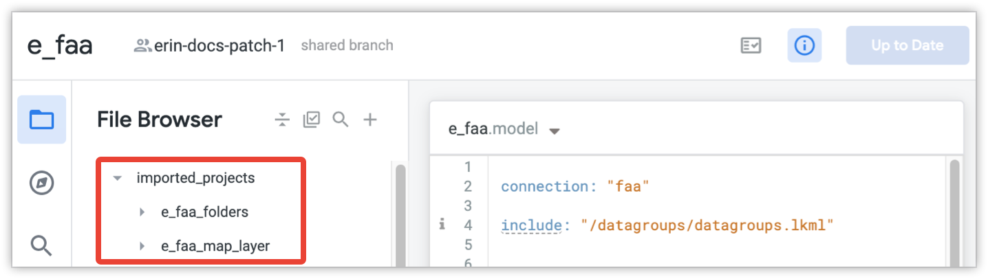 You can import files from other LookML projects and external repositories into your current project, which lets you use model files, view files, and other files in more than one project. Imported projects are read-only; if you want to edit the files you must edit them from their own LookML project (or from some other editor that is connected to the files' Git repository).
