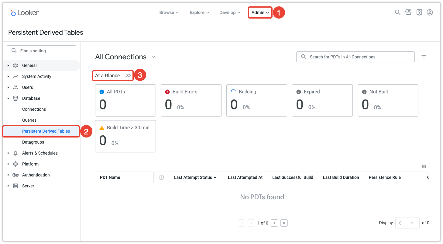The new At a Glance section on the PDT Admin page lets you quickly view key PDT monitoring information.