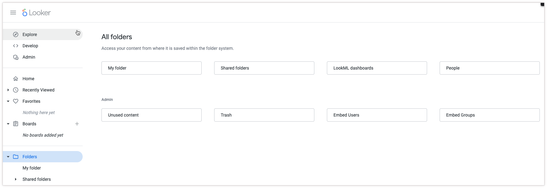 A new Looker Labs feature Embed Content Navigation controls whether the new embed content navigation is available on an instance. This Labs feature will now default to on, with the option of being disabled. Enhanced content navigation is now available for embedded Looks and Explores.