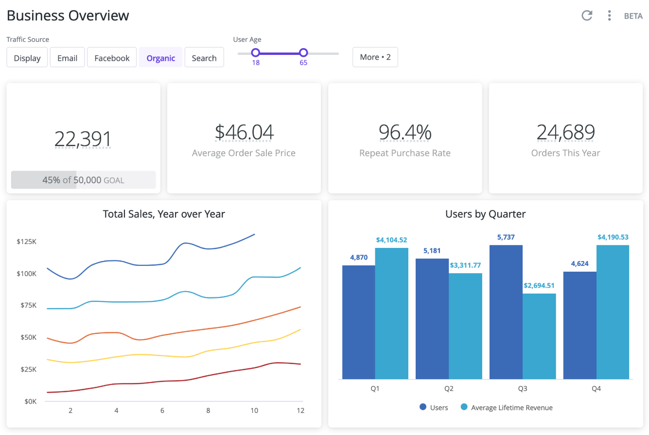 - science Custom visualizations are available to all Looker instances in the Labs panel. Learn more.