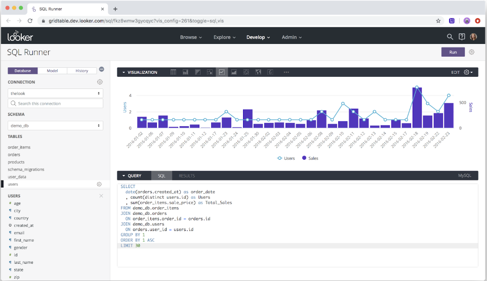 science SQL Runner Visualization. This Beta feature allows users to visualize data directly within SQL Runner and to share links for collaboration with other users. Learn more.
