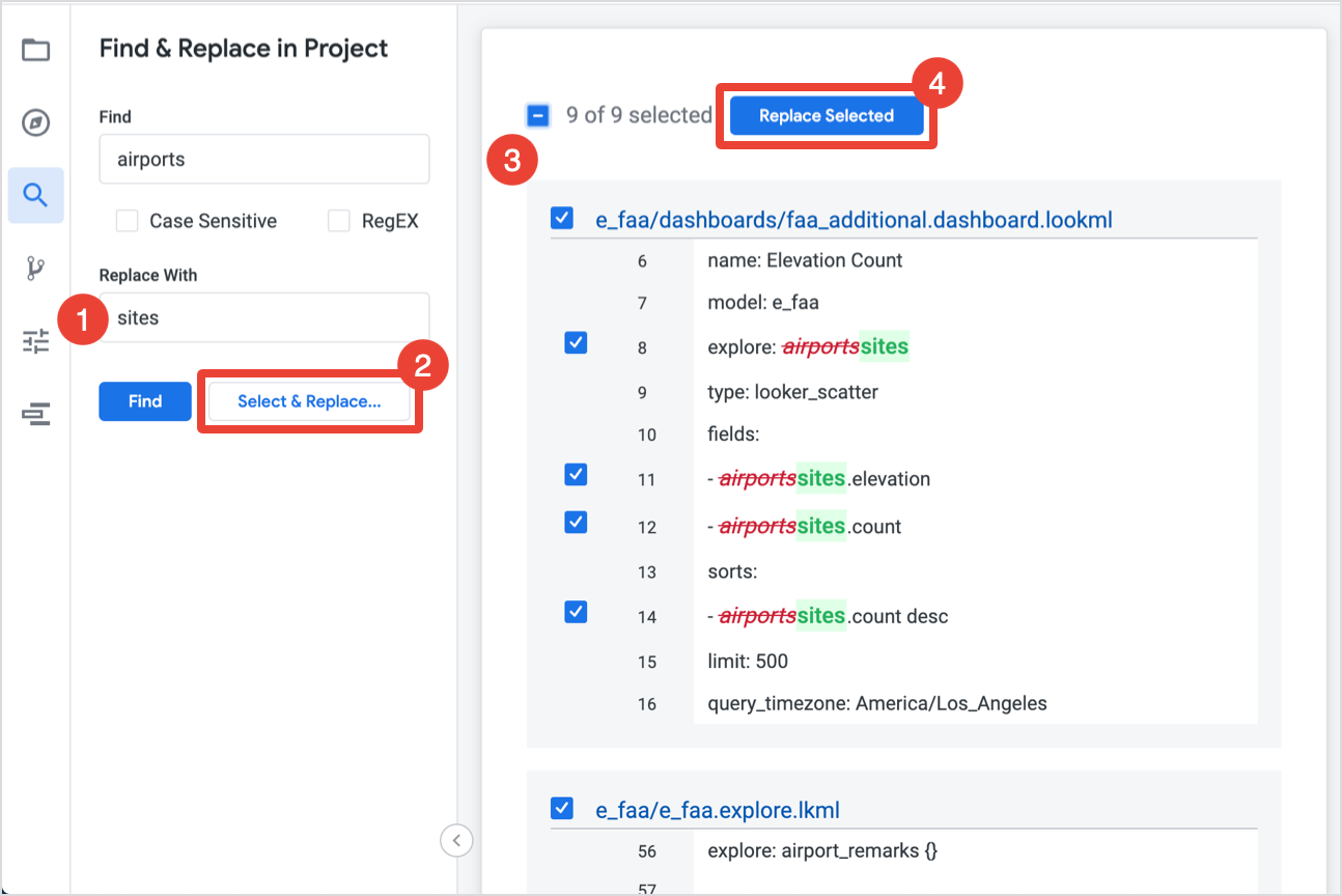 To use the Looker IDE find function, follow these steps: