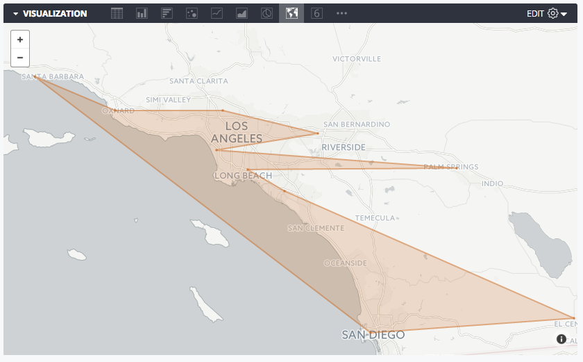 To build an interactive map chart, select the Map visualization type in the Visualization bar. You can also edit your map visualization in the visualization menu. Click the gear in the upper right corner of the Visualization bar.