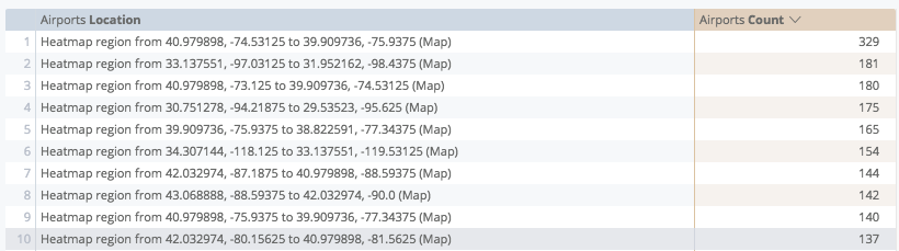 The Automagic Heatmap will re-query your data to construct the heatmap grid. A location dimension will typically show distinct points with one latitude/longitude coordinate, but when you use a heatmap, the dimension changes to the bounding boxes ("Heatmap region from ... to ..") of each square in the grid.