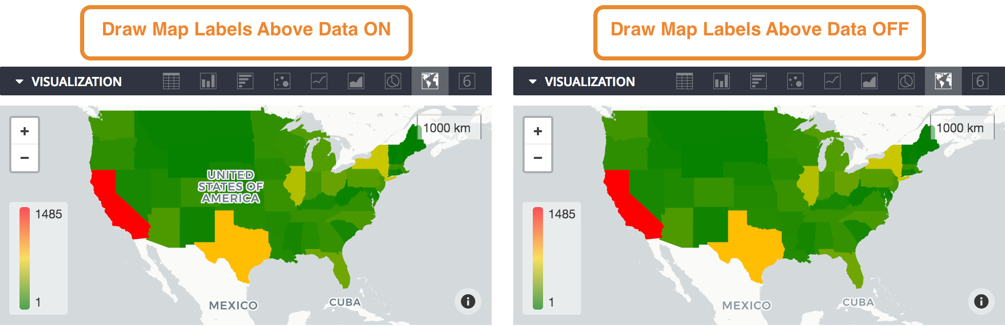 When this feature is enabled, the map labels, such as region names, appear on top of the heatmap.