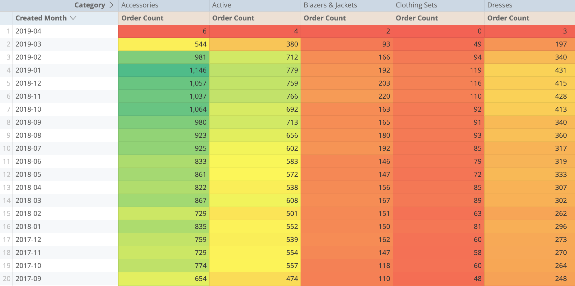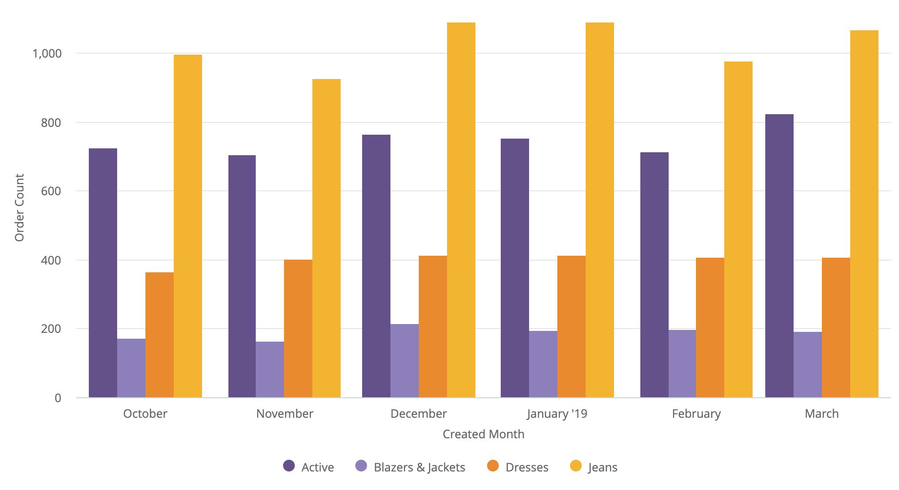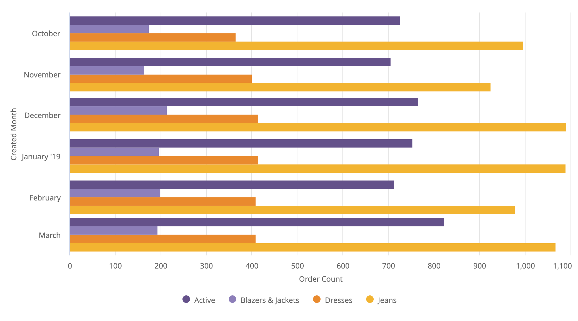 If two dimensions are specified, the first dimension is placed on the y-axis and the second dimension is placed on the x-axis. If multiple measures are specified, each measure becomes a y-axis series. If pivots are present, each pivot and measure combination becomes a y-axis series. If no measures are specified, two dimensions can be plotted.