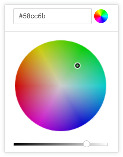 To bring up a color picker to select a color, click the color wheel to the right of the color value box. The corresponding hex value for that color appears in the color value box.