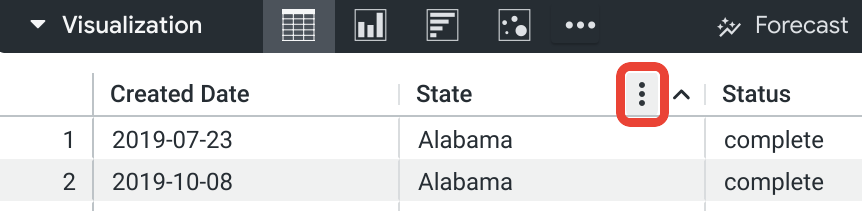 To use a table chart, run your query and select the table icon on the Visualization bar.