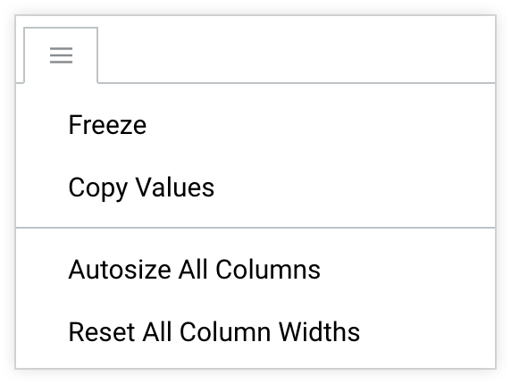 Column menu options