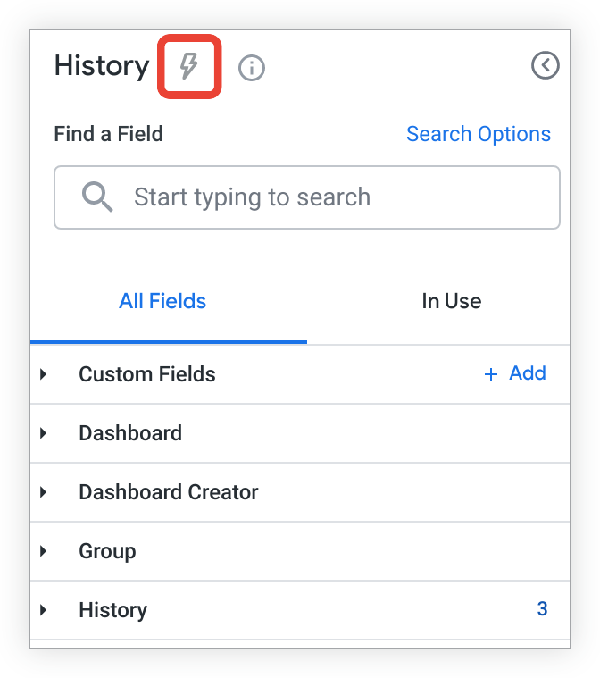 Select a Quick Start analysis tile in a blank Explore, or from the lightning bolt Quick Start menu in an Explore that has run, and Looker will show a query with fields that are preselected and sorted to answer one of the following questions: