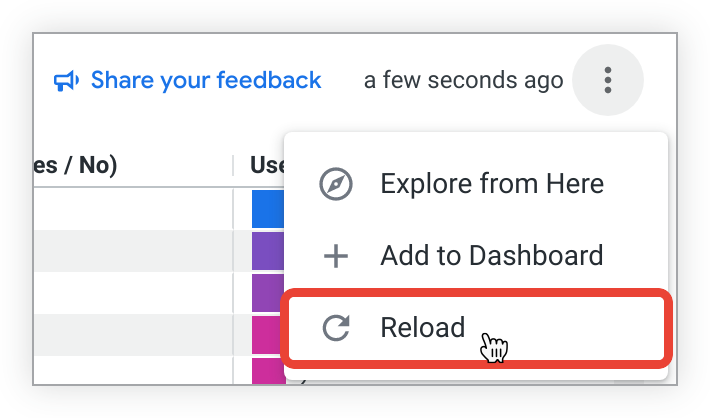 To reload the data in a guided analysis, select the Reload option from the three-dot Options menu.