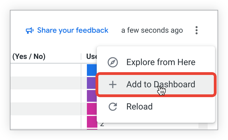 To save a guided analysis as a Look, select the Explore from Here option from the three-dot Options menu: