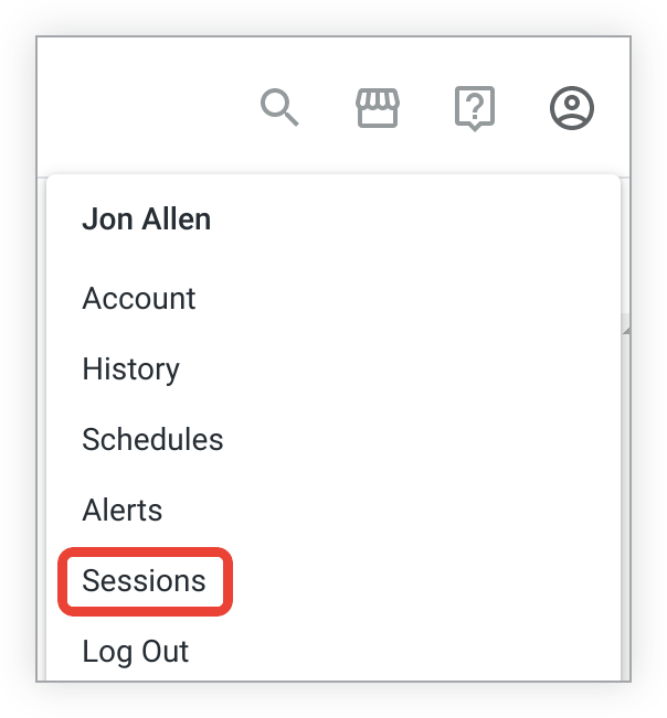 To view information about your current session, first select the Profile menu, and then select Sessions.