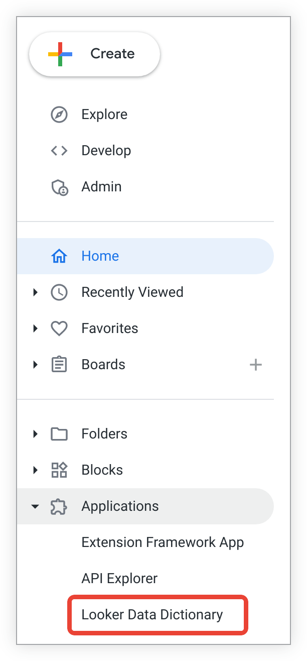The Looker Data Dictionary is an extension — a web application built using Looker components — developed using the Looker extension framework and deployed through the Looker Marketplace.