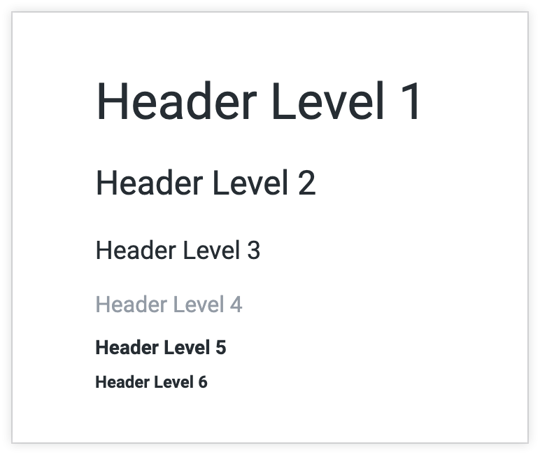 Dashboards support header levels 1-6: