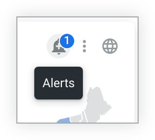 If your Looker admin has given you permission, you can use the bell icon at the upper right of a tile to create or follow an alert on the tile. A numeric indicator will show how many alerts you are permitted to view on that tile.