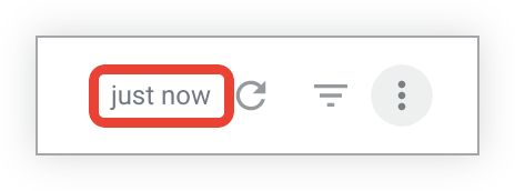 When dashboard tiles have been updated at different times, the last updated indicator no longer appears in this position; instead, each tile contains its own indicator in the tile three-dot menu. For more information, see the Updating data on dashboards section on this page.