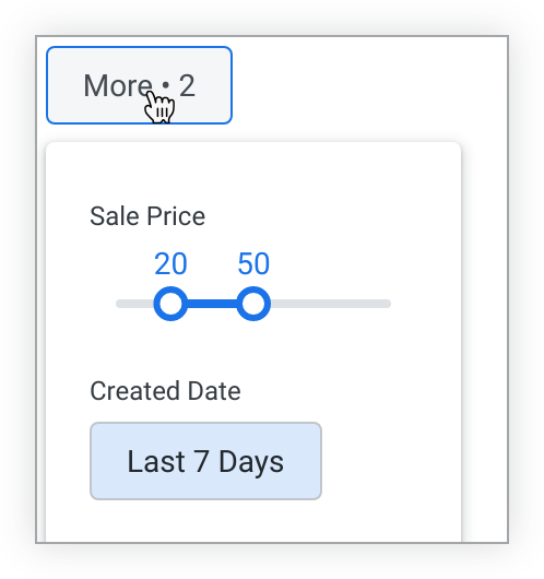 For popover filters and filters that are placed behind a More button, clicking on the filter value or the More button will reveal the full filter control.