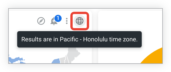 If your Looker admin has enabled User Specific Time Zones and your dashboard time zone is set to Each tile's timezone, you may see a globe icon in the upper right corner of a tile. This indicates that the tile has a different time zone than the default dashboard time zone and that the tile is not in your default time zone, which is set in your account settings. Hover over the globe icon to see the time zone that the tile is using.