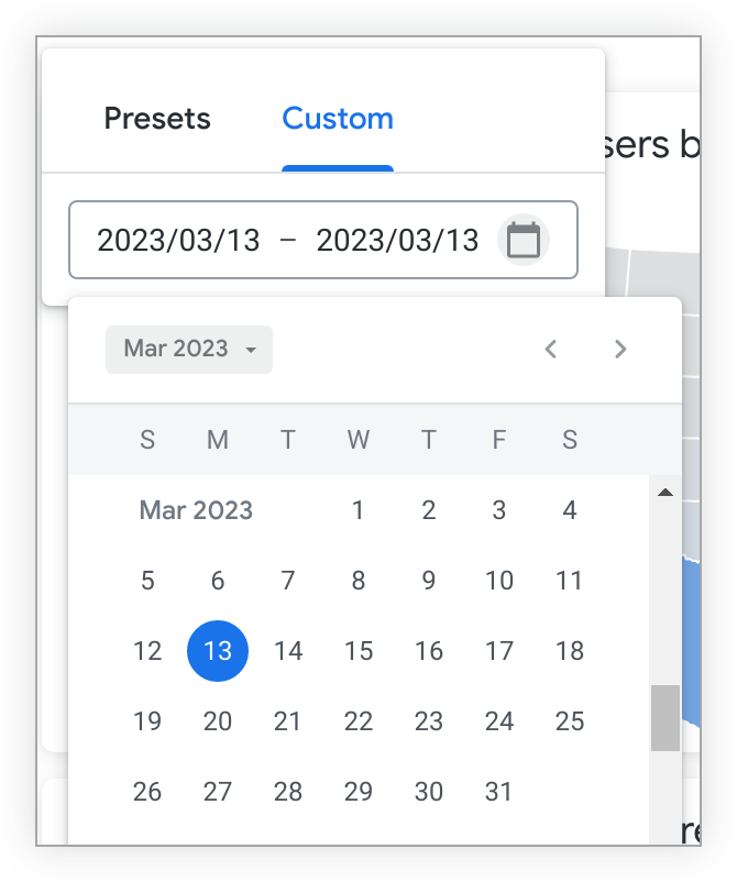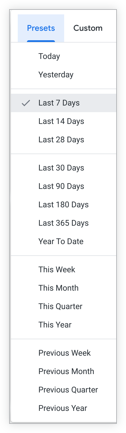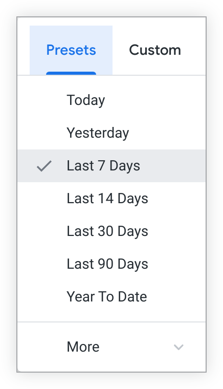 To change its timeframe, click on the filter to display a drop-down menu of preset range options.