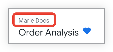 The dashboard favorite indicator shows whether you have marked the dashboard as a favorite. If the dashboard is marked as a favorite, the heart icon is colored solid blue. You can also favorite or unfavorite directly in the dashboard by clicking on the heart.