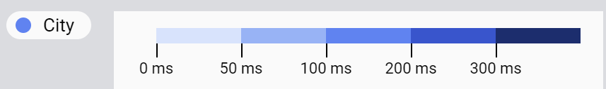 The Timeline view shows the median RTT between the selected geographic areas and Google Cloud regions. It provides the current latency metrics and six weeks worth of historical data. You can use the filters to further aggregate the traffic to city, geographic region, and country levels. You can only view the latency metrics corresponding to specific region-geographic location pairs if there is sufficient Google Cloud traffic for that pair.