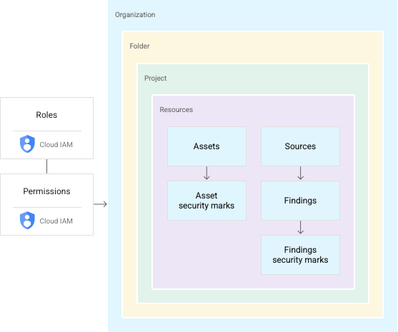 With folder and project roles, users with Security Command Center roles have the ability to manage assets and findings within designated projects or folders. For example, a security engineer can be given limited access to select folders and projects while a security administrator can manage all resources at the organization level.