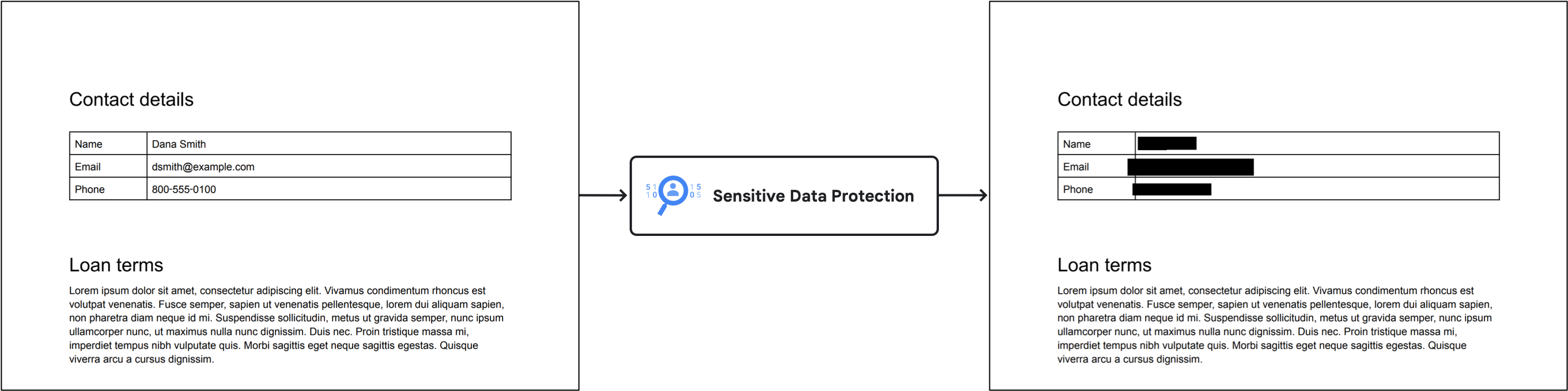Sensitive Data Protection uses object character recognition (OCR) to detect text in images. You can redact the following in an image: