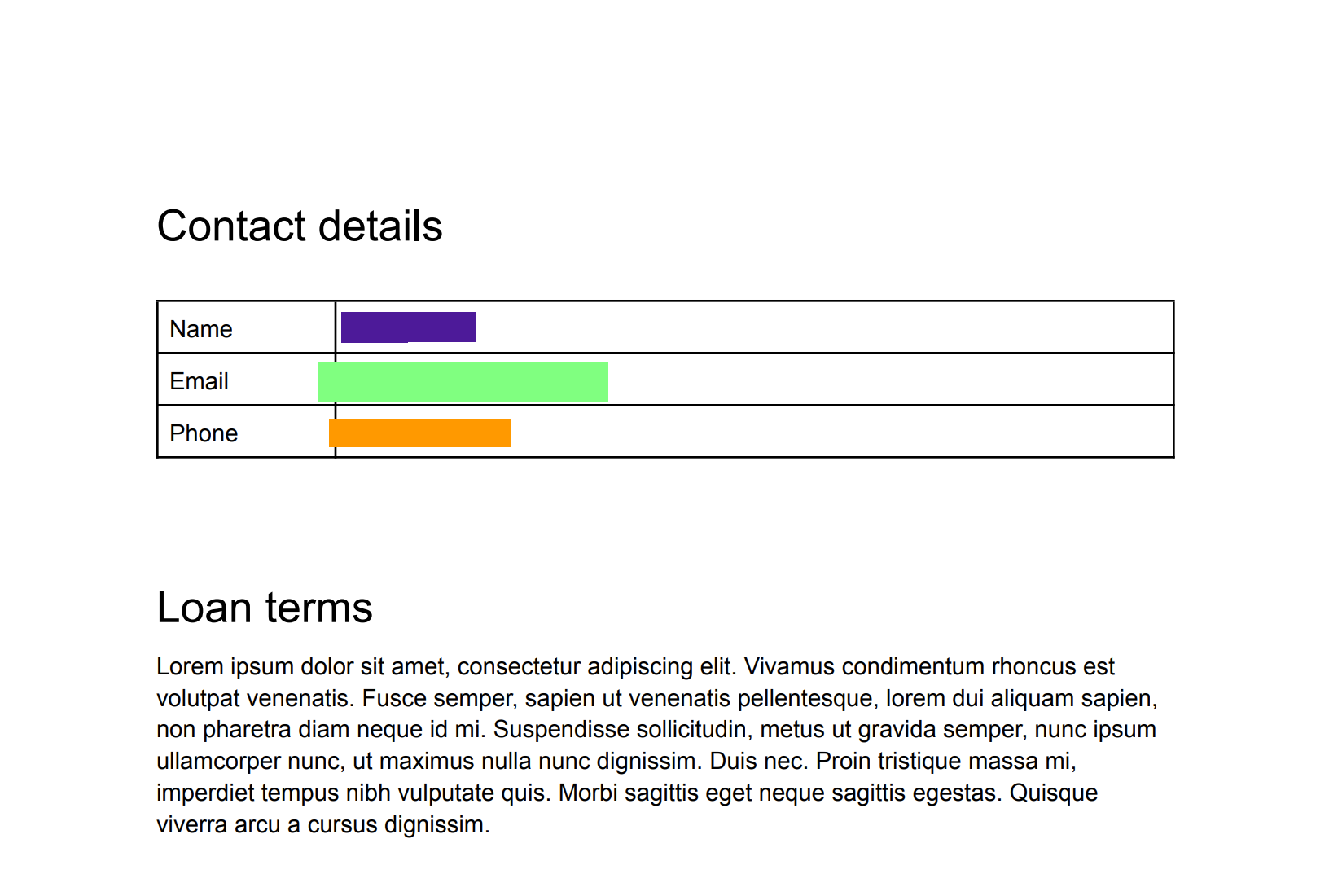 Note that in addition to masking the handwritten Social Security number, the email address, and the phone number, Sensitive Data Protection also redacted the year. The next section demonstrates how to redact only certain infoTypes.