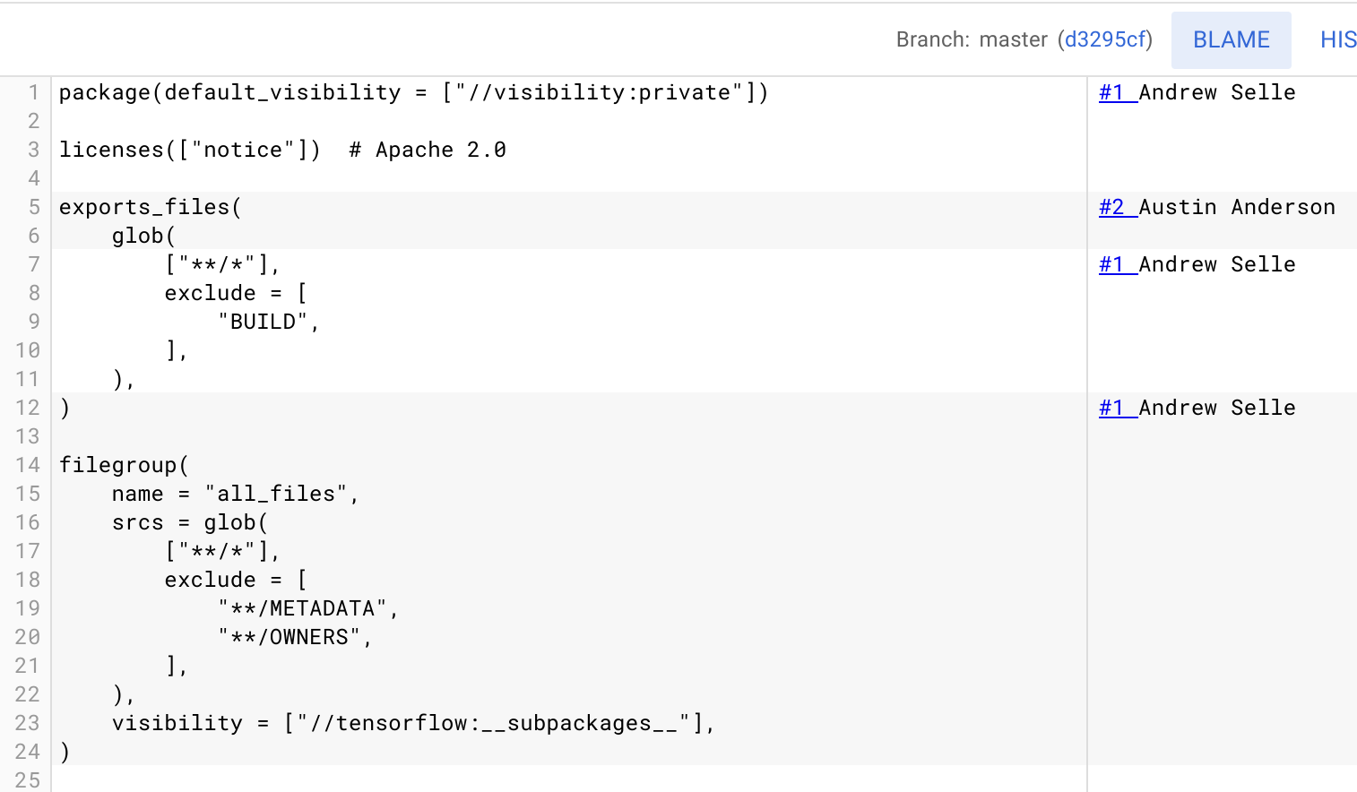 In the upper-right corner, click Blame.