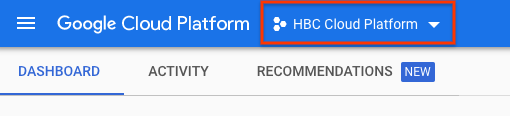 Locate the Google Cloud Platform project drop-down menu in your dashboard: