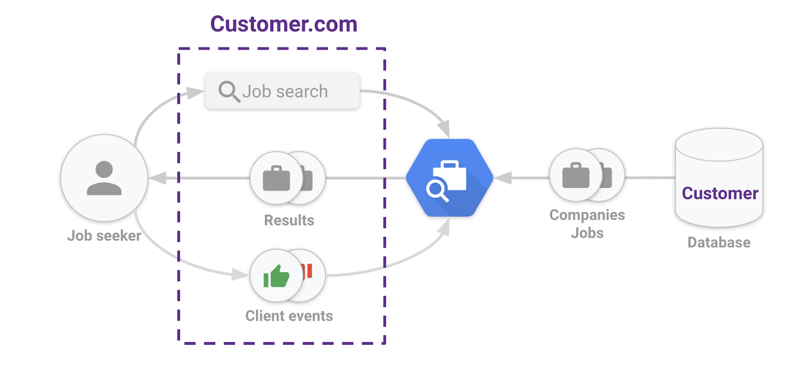 CTS - Job Search enables you to leverage Google's Machine Learning (ML) technology within your own website. You send a list of jobs and companies to CTS, which stores them and indexes them into a searchable form. It uses a pre-trained ML model with your provided data to return relevant search results. You can then render the API output to your company site as viewable results. As soon as Job Search is integrated with your system your users will begin seeing high quality search results immediately.