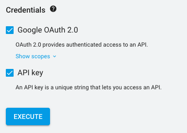 Tip: After you get the output you want, bookmark the API Explorer URL. When you want to run the method again, paste the URL into your browser. The form is already populated with your values. Make any change you wish and click Execute to run the method.