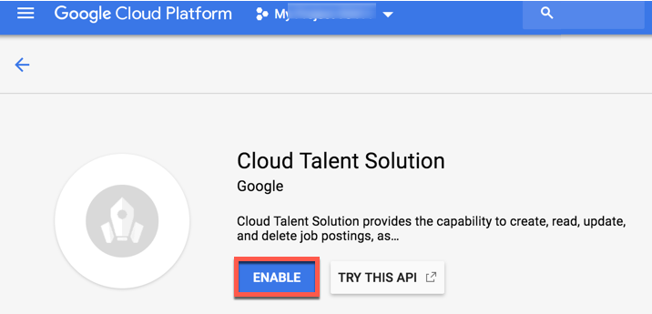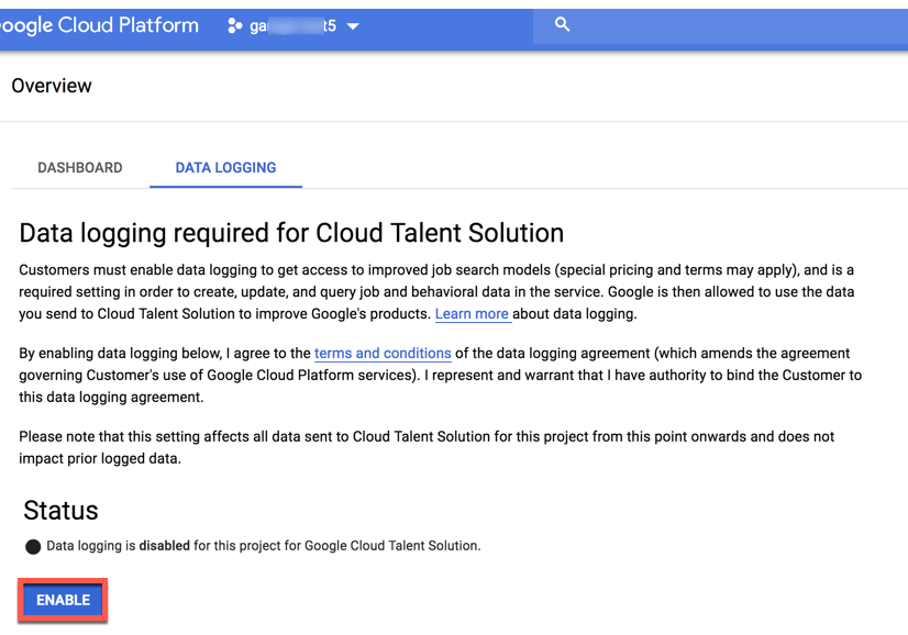 Go to your project settings for Cloud Talent Solution in the GCP Dashboard.