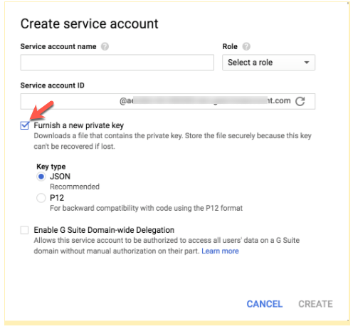When creating the service account, also check the box Furnish a new private key. A new JSON credential file is automatically downloaded. Store this file in a specific location on the server, and follow the instructions to set the GOOGLE_APPLICATION_CREDENTIALS environment variable to point to this file. This is an essential step for authenticating requests to Cloud Talent Solution.