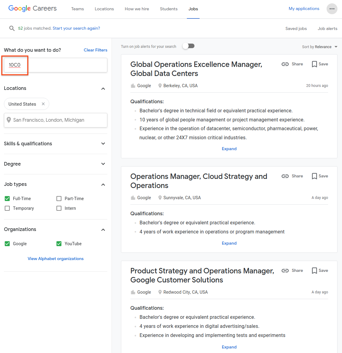 Military code-based search is offered as a part of the Cloud Talent Solution search algorithm, so all users have access to this feature. There is nothing on the development side that needs to be done, and you are not required to modify your existing job titles and descriptions in any way.