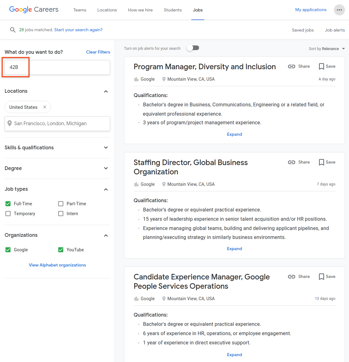 Military code-based search is offered as a part of the Cloud Talent Solution search algorithm, so all users have access to this feature. There is nothing on the development side that needs to be done, and you are not required to modify your existing job titles and descriptions in any way.