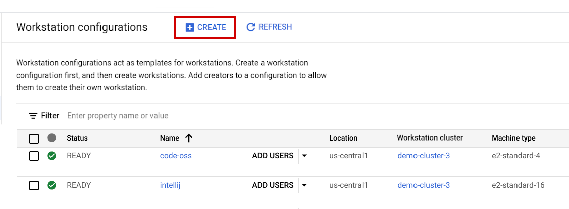 2. From the Workstation configurations page, click add_boxCreate.