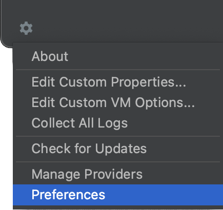 For macOS, select IntelliJ IDEA > Preferences from the main menu.