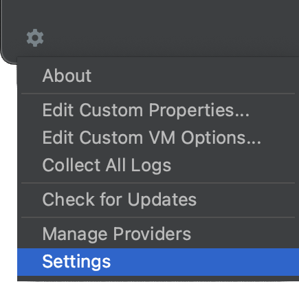 2. Optional: To access JetBrains Settings for IntelliJ and other IDEs, see configure project settings.