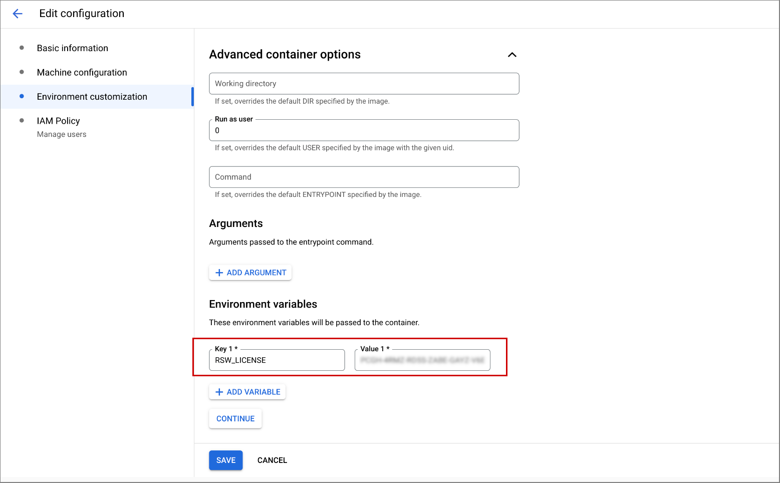 RSW_LICENSEin the Key field and paste your Posit Workbench license key into the Value field.